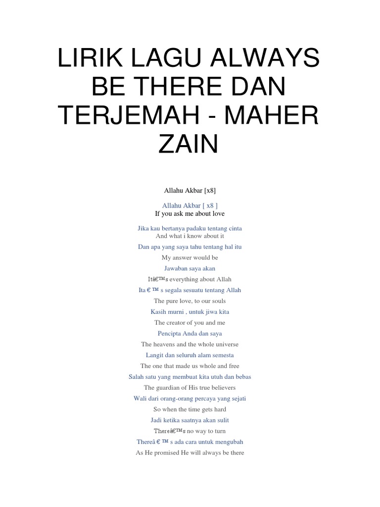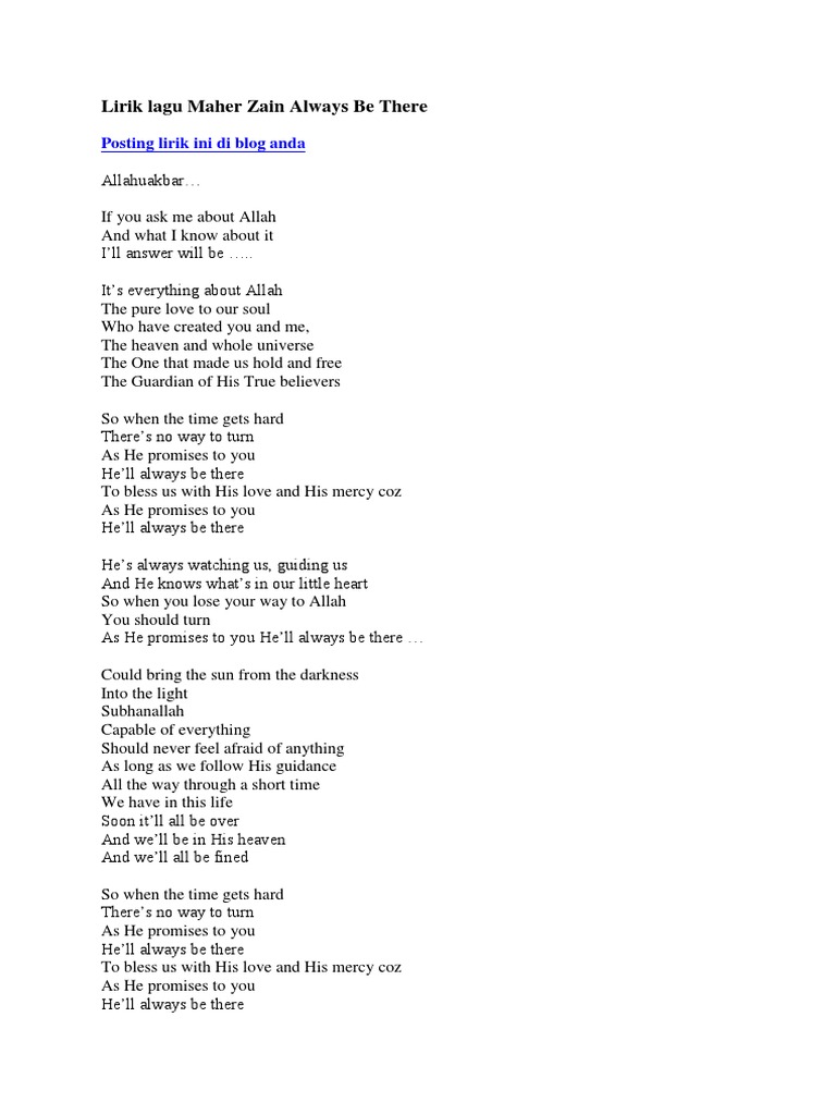 Lirik Lagu Maher Zain Always Be There / Download lagu terbaru, gudang lagu mp3 gratis terbaik 2020.