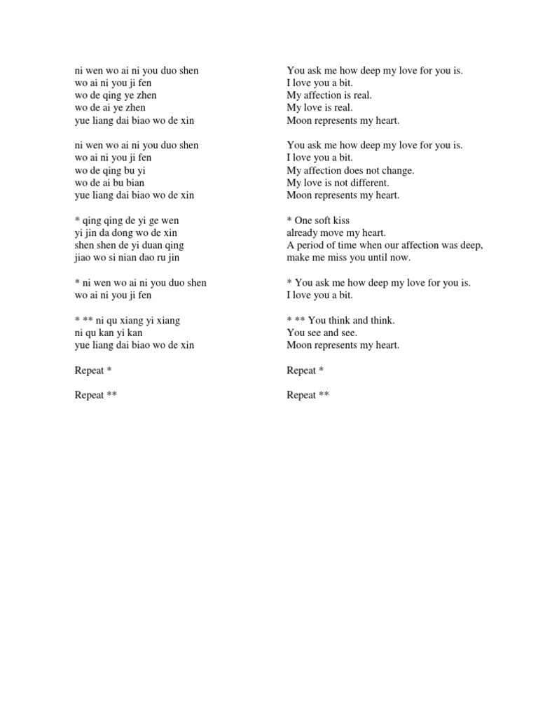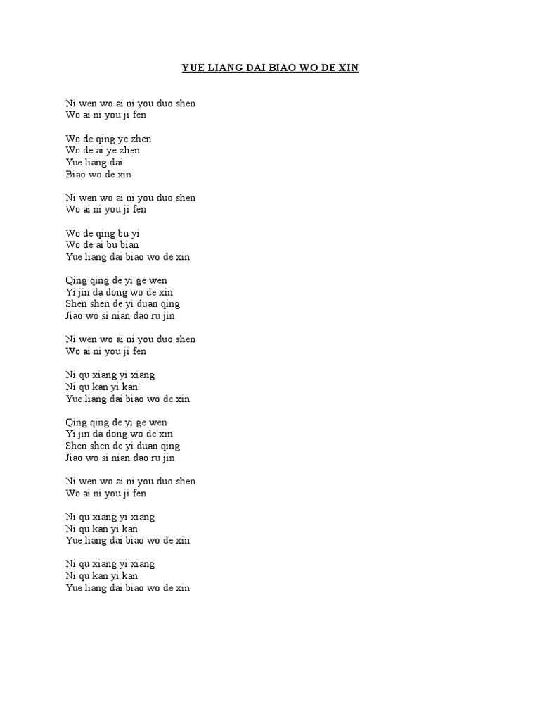 Lirik Lagu Ni Wen Wo Ai : Am wo de qing ye zhen.