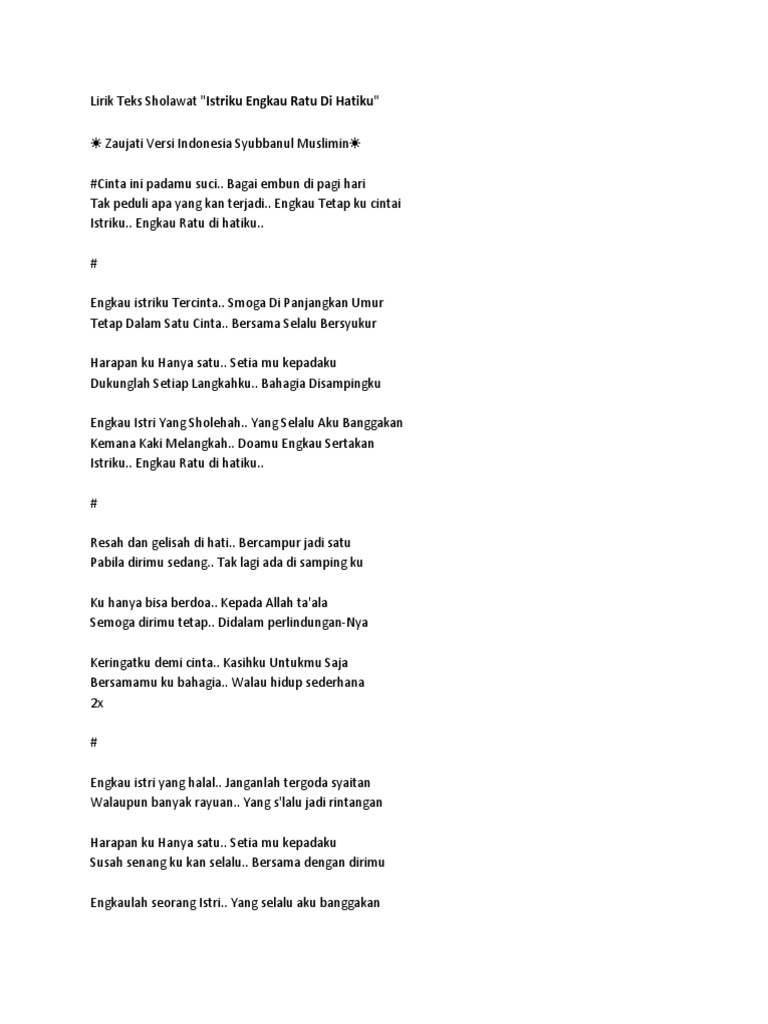 Lirik Lagu Zauji(Suamiku) Dan Artinya / Lagu suamiku iman terbaru gratis dan mudah dinikmati.
