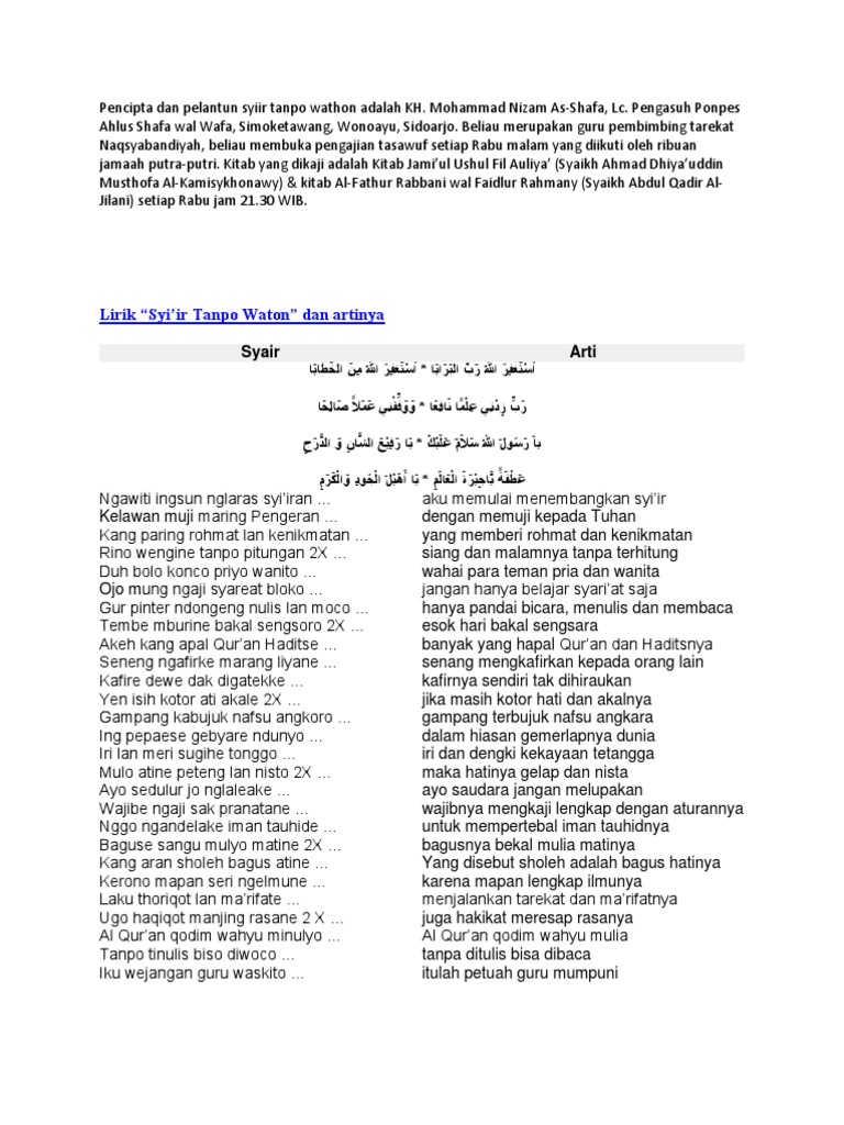 Lirik Syiir Tanpo Waton Dan Artinya / Rino wengine tanpo pitungan 2x.