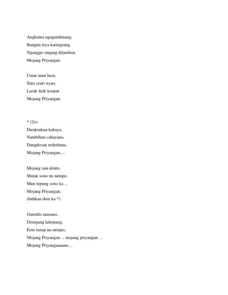 Mojang Priangan Lirik - Lirik lagu mojang priangan jawa barat sunda.