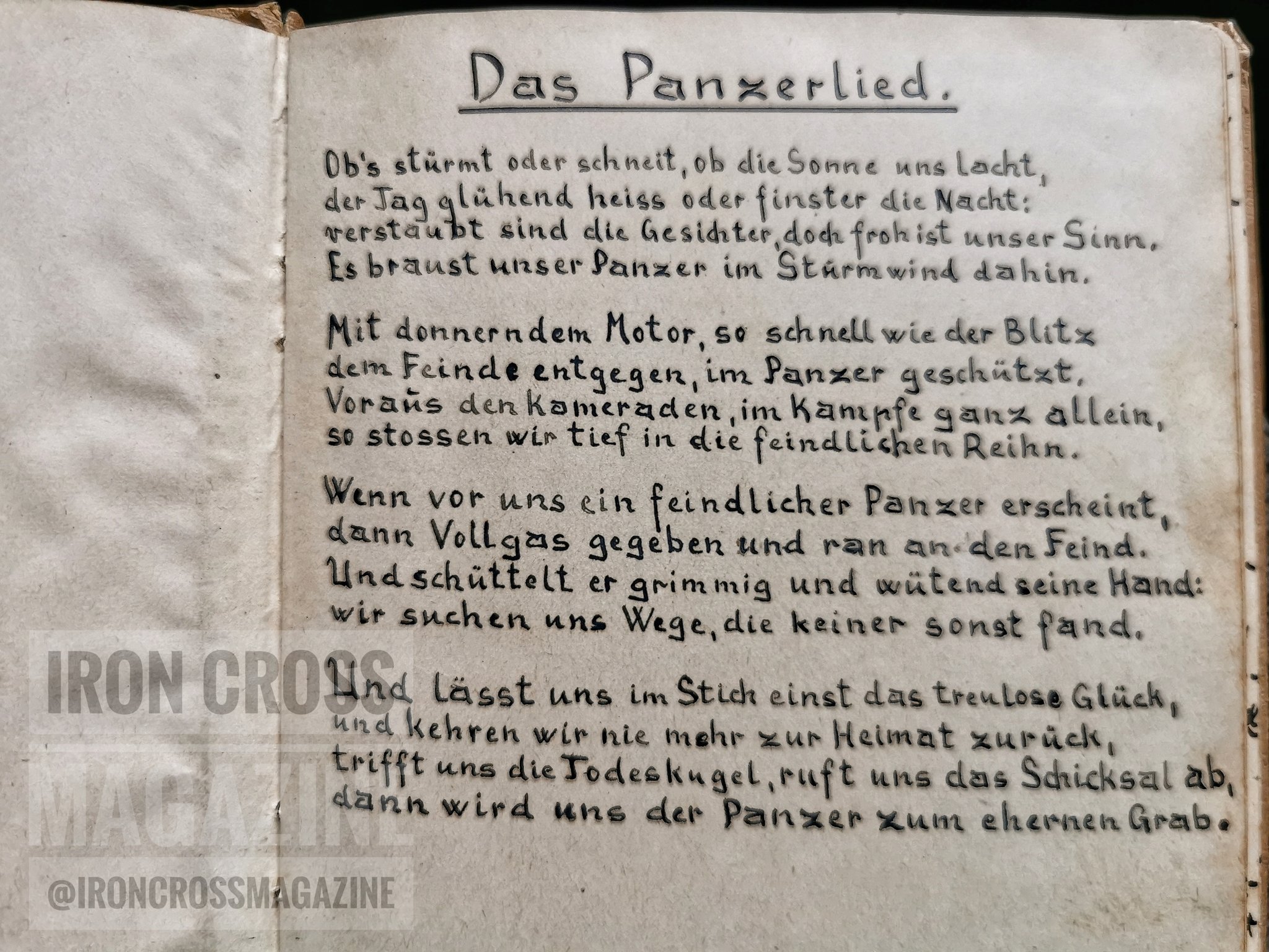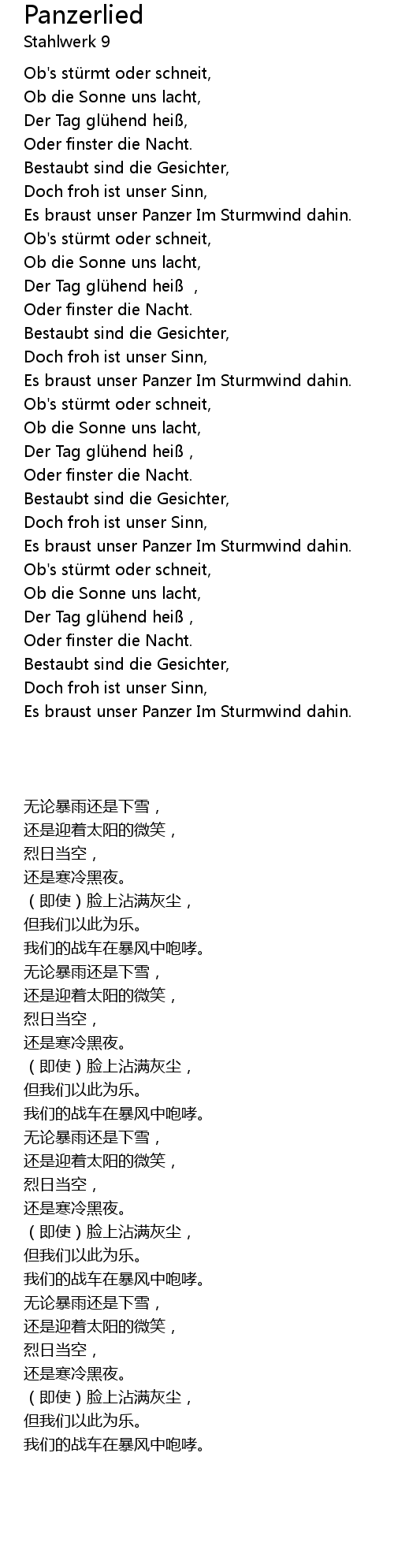 Panzerlied Lyrics / Es braust unser panzer im sturmwind dahin!