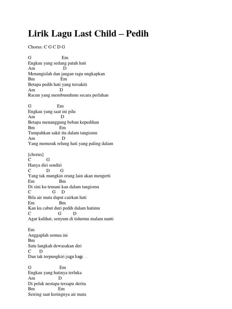 Pedih Lirik - verse 1 g em engkau yang sedang patah hati am d menangislah dan jangan ragu ungkapkan bm em betapa pedih hati yang tersakiti.